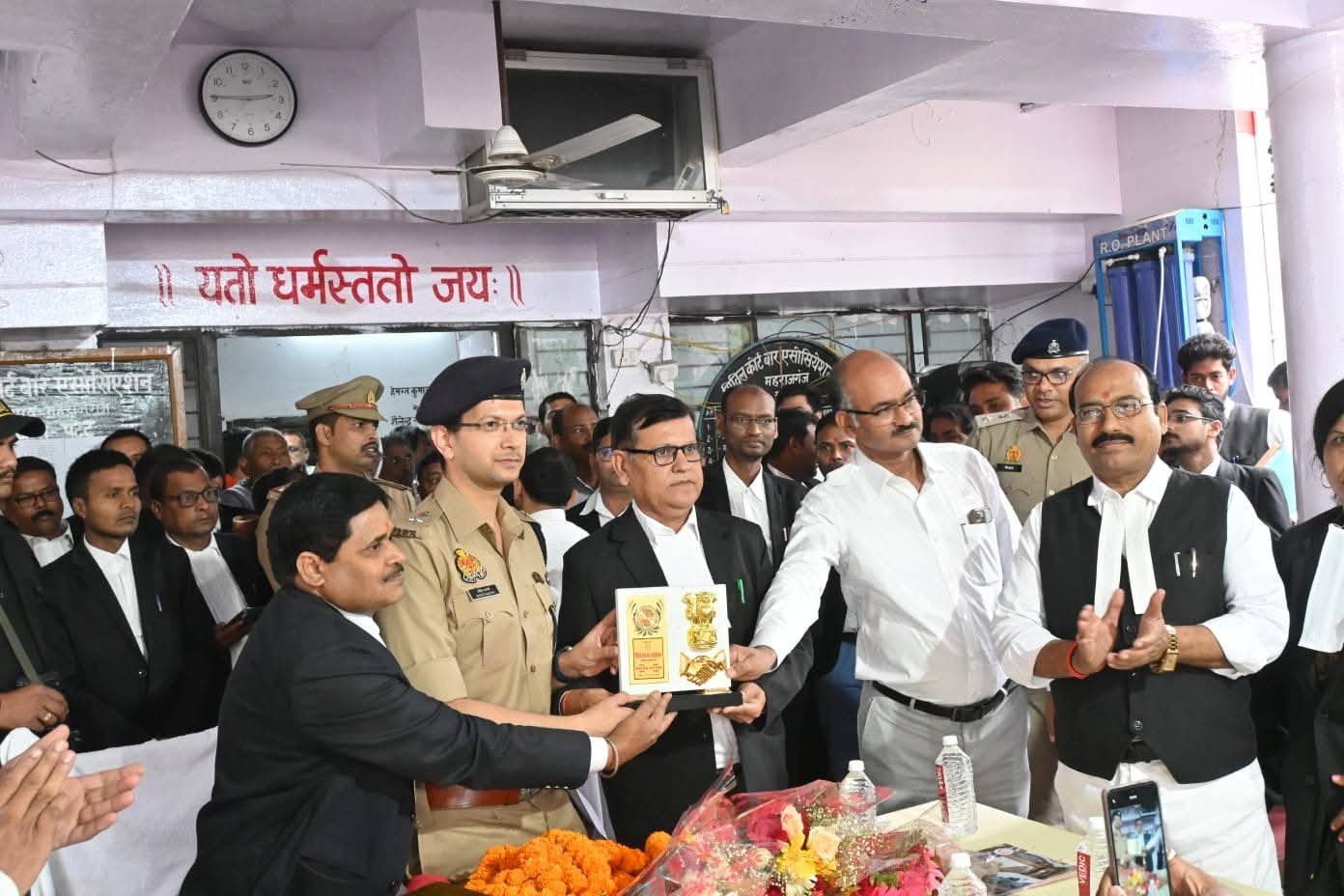 जनपद महराजगंज में कानून-व्यवस्था को और मजबूत बनाने के उद्देश्य से पुलिस अधीक्षक श्री शक्ति मोहन अवस्थी ने सिविल कोर्ट बार एसोसिएशन के अधिवक्ताओं के साथ वाद-संवाद किया। इस दौरान आपसी समन्वय बढ़ाने, न्यायिक प्रक्रिया को सरल और प्रभावी बनाने तथा जनहित से जुड़े विभिन्न महत्वपूर्ण मुद्दों पर विस्तृत चर्चा हुई। बैठक में पुलिस और अधिवक्ताओं के बीच बेहतर तालमेल स्थापित कर न्याय व्यवस्था को और सुदृढ़ करने पर जोर दिया गया।